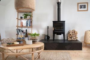The fireplace is the standout feature of this holiday home. Boasting a private entrance, this holiday home includes 2 living rooms, 2 separate bedrooms and 1 bathroom with a shower and a hairdryer. Meals can be prepared in the well-fitted kitchen, which has a stovetop, a refrigerator, a dishwasher and kitchenware. The holiday home offers a washing machine, a tea and coffee maker, a seating area, a flat-screen TV with streaming services, as well as sea views. The unit has 2 beds.