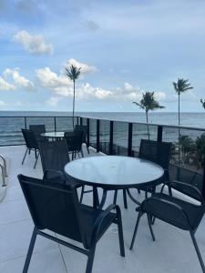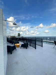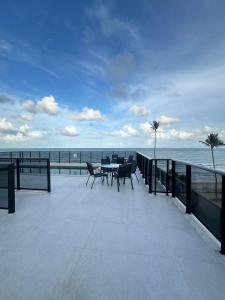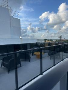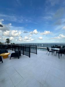 El apartamento cuenta con balcón y vistas al mar, y tiene 1 dormitorio, una sala de estar, TV de pantalla plana, una cocina equipada con nevera y microondas, y 1 baño con ducha. El apartamento Porto de Galinhas 104 dispone de toallas y ropa de cama.