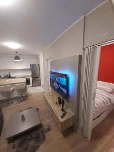 This apartment consists of 1 living room, 1 separate bedroom and 1 bathroom with a bath and free toiletries. In the well-fitted kitchen, guests will find a stovetop, a refrigerator, kitchenware and an oven. This air-conditioned apartment includes a dining area, a flat-screen TV with cable channels a washing machine and a balcony. The unit provides 2 beds.