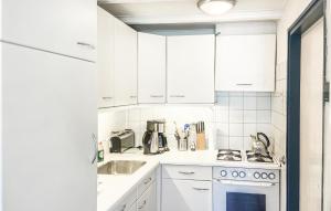 The well-equipped kitchen has a stovetop, a refrigerator, kitchenware and an oven. This mobile home features a private entrance, a tea and coffee maker, a TV with cable channels and outdoor furniture.