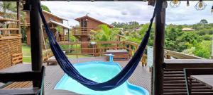 The holiday home with a balcony and mountain views features 1 bedroom, 3 living rooms, a TV, an equipped kitchen with an oven and a microwave, and 1 bathroom with a shower. Guests at Pousada Além do Mar can enjoy a meal in the outdoor dining area with pool views. The property offers garden views.