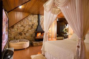 Guests will have a special experience as this suite provides a hot tub and a fireplace. This suite includes a TV with cable channels, a private bathroom as well as a balcony with mountain views. The unit offers 1 bed and 1 futon.