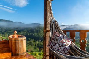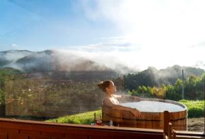 Guests will have a special experience as this double room offers a hot tub, a sauna and a fireplace. Offering free toiletries and bathrobes, this double room includes a private bathroom with a bath and a shower. This double room features a minibar, flat-screen TV with cable channels, garden views, as well as wine/champagne for guests. V této ubytovací jednotce je k dispozici 1 postel.