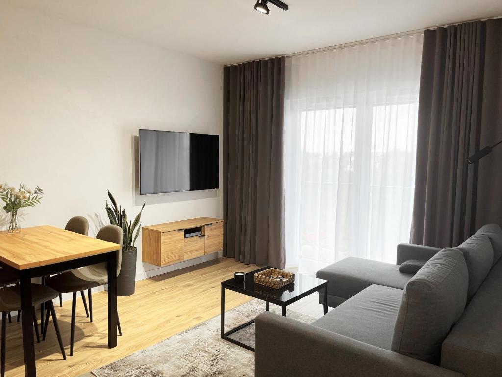 Apartmán Poznań Grunwald - Wieruszowska 2 poskytuje 1 ložnici, 1 koupelnu, ložní prádlo, ručníky, satelitní TV s plochou obrazovkou, jídelní kout a plně vybavenou kuchyň. Z balkonu ubytování ubytování se nabízí výhled na město. V koupelně ubytování ubytování nechybí sprcha ani fén.