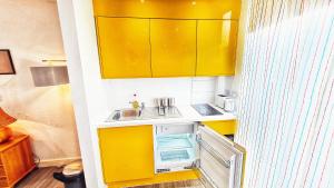 Cet appartement comporte 1 chambre, une kitchenette avec un réfrigérateur et un micro-ondes, ainsi que 1 salle de bains avec une douche, des articles de toilette gratuits et un lave-linge. Le linge de lit et les serviettes sont mis à disposition par l'établissement.
