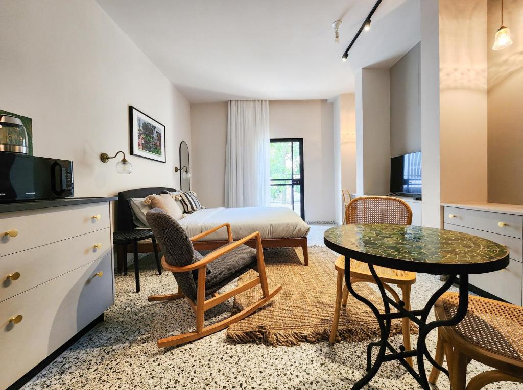 Na miejscu zapewniono aneks kuchenny z pełnym wyposażeniem, w tym lodówką i ekspresem do kawy, a także telewizor z płaskim ekranem oraz prywatną łazienkę z prysznicem. Wybrane opcje zakwaterowania w Premium Studios Carmel Market dysponują balkonem lub tarasem.