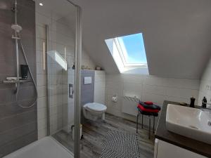 Prázdninový dům ubytování nabízí 2 ložnice, 1 koupelnu, plně vybavenou kuchyň s jídelním koutem a lednicí a obývací část s TV s plochou obrazovkou. V koupelně ubytování Premiumhaus DeLuchs nechybí sprcha ani fén.