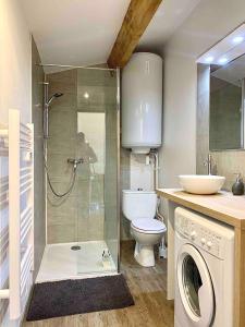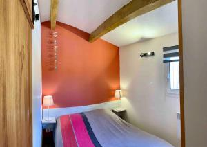 Klimatizovaný apartmán Presqu'île de Giens, Joli T2 à 5 minutes de la plage à pieds zahrnuje 1 ložnici, obývací pokoj, plně vybavenou kuchyň s lednicí a myčkou a 1 koupelnu. Apartmán má také koupelnu.