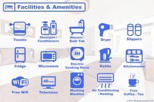 Questa casa vacanze con aria condizionata comprende 1 camera da letto, un soggiorno, una cucina con utensili, frigorifero e bollitore elettrico, e 1 bagno con bidet e doccia. Questa casa vacanze presso Prestige Suites Osaka Abiko mette a disposizione lenzuola e asciugamani.