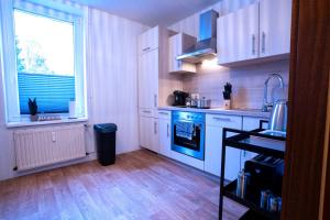 Apartmán PrimeLoft Stadtblick - stilvoll & modern - Zentrum Braunlage - bis 5 Pers - mit Parkplatz nabízí 2 ložnice, 1 koupelnu, plně vybavenou kuchyň s jídelním koutem a lednicí a obývací část s TV s plochou obrazovkou. Koupelna v ubytování je vybavena sprchou, fénem a toaletními potřebami zdarma.