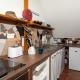 La cucina include frigorifero, lavastoviglie e forno a microonde, oltre a una macchina da caffè.