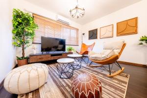 This luxurious villa has a hot tub, a private open-air bath and a sauna. Featuring a private entrance, this air-conditioned villa is comprised of 1 living room, 3 separate bedrooms and 2 bathrooms with a bath and a shower. In the fully equipped kitchen, guests will find a stovetop, a refrigerator, kitchenware and a microwave. This villa features a washing machine, tatami, a flat-screen TV with streaming services and a terrace. The unit offers 8 beds.