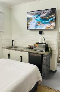 The apartment has a flat-screen TV and 1 bedroom. Towels and bed linen are offered at Private Cosy Cottage on Pelican.