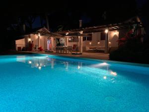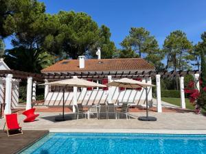 The pool with a view and fireplace are the standout features of this villa. The villa includes a shared bathroom, well-fitted with a bath, a shower, a bidet and a hairdryer. Guests will find a refrigerator, a dishwasher, an oven and a microwave in the well-fitted kitchen. The villa also provides guests with a barbecue. The air-conditioned villa provides a flat-screen TV with streaming services, a washing machine, a private entrance, a tea and coffee maker as well as garden views. The unit offers 8 beds.