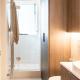 Dieses Privatzimmer besticht außerdem durch eine gut ausgestattete Küche mit einem Kühlschrank, einem Geschirrspüler und einem Ofen sowie einen Haartrockner