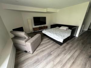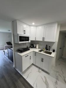 Klimatizovaný apartmán Private separate furnished unit with a full access to a backyard zahrnuje 1 ložnici, obývací pokoj, plně vybavenou kuchyň s lednicí a mikrovlnnou troubou a 1 koupelnu. Koupelna je vybavená bidetem, vanou nebo sprchou a pantoflemi.