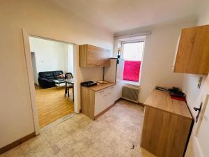 - Small kitchen area,