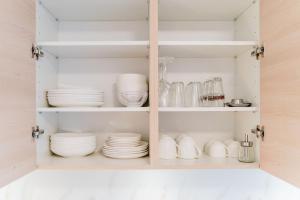 The apartment has a private bathroom equipped with a shower and a hairdryer. The well-fitted kitchenette features a stovetop, a refrigerator, a dishwasher and kitchenware. The apartment provides a flat-screen TV with cable channels, a coffee machine, a seating area, a wardrobe as well as sea views. The unit offers 1 bed.