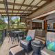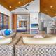 Dieses Ferienhaus mit Klimaanlage ist eingerichtet mit 2 Schlafzimmern, TV, einem Essbereich und einer Küche mit einem Kühlschrank und einem Geschirrspüler.