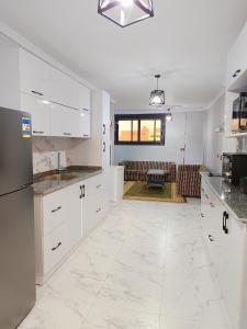 W apartamencie z 2 sypialniami zapewniono salon z telewizorem z płaskim ekranem, kuchnię z pełnym wyposażeniem, w tym lodówką i piekarnikiem, a także kilka łazienek (2) z prysznicem. Ręczniki i pościel są dostępne w apartamencie Pyramids View Rooftop Apartment.