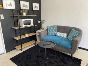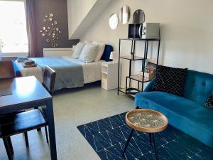 The studio features a seating area, a dining area, as well as a private bathroom featuring a shower and a hairdryer. In the well-fitted kitchen, guests will find a stovetop, a refrigerator, kitchenware and a microwave. The studio provides a flat-screen TV with streaming services, a washing machine, a private entrance, a tea and coffee maker as well as an inner courtyard view. The unit offers 1 bed.