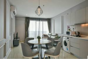 This apartment boasts a pool with a view, sauna and fireplace. This spacious apartment comprises 1 living room, 2 separate bedrooms and 1 bathroom with a walk-in shower and free toiletries. In the well-fitted kitchen, guests will find a stovetop, a refrigerator, kitchenware and a microwave. The air-conditioned apartment provides a flat-screen TV with cable channels, a washing machine, a private entrance, soundproof walls as well as garden views. The unit offers 2 beds and 2 futons.