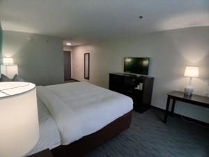 A microwave, refrigerator and coffee machine are provided in this room. There is also a flat-screen TV. Ironing facilities and a hairdryer are included.