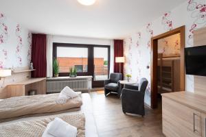The apartment at Quartier No 6 Apartment 12 consists of 1 separate bedroom, a living room, a seating area, and 1 bathroom with a hair dryer. A TV is available. Quartier No 6 Apartment 12 is allergy-free and non-smoking.