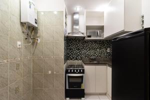 Cet appartement avec climatisation comporte 1 chambre, une télévision, un coin repas, ainsi qu’une cuisine avec un réfrigérateur et un four. Le linge de lit et les serviettes sont mis à disposition par 1Quarto com Vista Mar em Copacabana | BRX 58/1002.