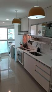 Apartmán v ubytování má 1 ložnici, 2 koupelny, ložní prádlo, ručníky, satelitní TV s plochou obrazovkou, jídelní kout a plně vybavenou kuchyň. Z terasy ubytování 2 quartos, com ar e estacionamento no predio se otevírá výhled na město. V koupelně ubytování 2 quartos, com ar e estacionamento no predio nechybí sprcha ani fén.