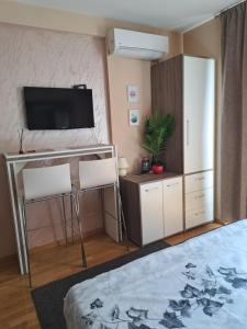 Featuring a private entrance, this air-conditioned apartment comprises a kitchen, 1 bedroom and 1 bathroom with a shower and a hairdryer. Meals can be prepared in the well-fitted kitchen, which comes with a refrigerator, kitchenware and a microwave. This apartment features a washing machine, a tea and coffee maker, flat-screen TV with satellite channels, as well as wine/champagne for guests. The unit offers 1 bed.