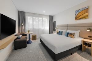 Our modern, open-plan Studio Apartment offers leafy residential views and is a spacious alternative to a standard hotel room. It features a comfortable king-sized bed, kitchenette with stovetop and microwave, a private ensuite bathroom and casting-enabled TV. A separate seating area and free high-speed internet access make the Studio Apartment an ideal choice for both business and leisure travelers.