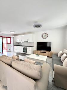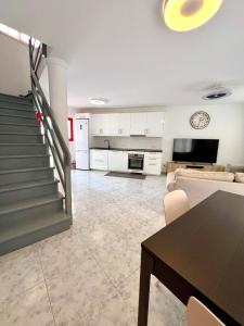 Diese Ferienwohnung und 1 Schlafzimmer verfügt über eine Küche, einen Sitzbereich und Flachbild-TV.