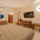 Гостям предлагается размещение в современных и светлых номерах с телевизором с плоским экраном и спутниковыми каналами, кондиционером и террасой. Собственная ванная комната с душем укомплектована бесплатными туалетно-косметическими принадлежностями. С террасы Quinta Bella Huatulco открывается вид на море. Кроме того, к вашим услугам гостиная зона.