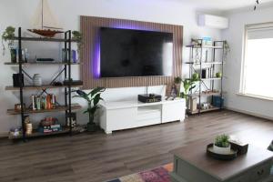 Featuring a private entrance, this air-conditioned apartment is comprised of 1 living room, 3 separate bedrooms and 1 bathroom with a shower and a bidet. Guests will find a stovetop, a refrigerator, kitchenware and a microwave in the well-equipped kitchen. The apartment also has a barbecue. The apartment offers a flat-screen TV with streaming services, a washing machine, a tea and coffee maker, a seating area as well as garden views. The unit offers 3 beds.