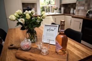 The holiday home is fitted with 2 bedrooms, 1 bathroom, bed linen, towels, a flat-screen TV with streaming services, a dining area, a fully equipped kitchen, and a terrace with garden views. A private entrance leads into the holiday home at Railway Cottage with garden & parking in heart city, where guests can enjoy wine or champagne and chocolates or cookies. Railway Cottage with garden & parking in heart city is allergy-free and non-smoking.