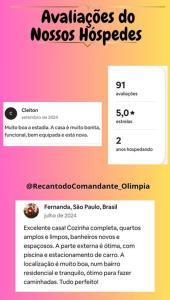 Recanto Do Comandante 2 se nachází v destinaci Olímpia a poskytuje volný vstup do krytého bazénu. Thermas of Laranjais Water Park se nachází 3,9 km odtud. Ubytování Recanto Do Comandante 2 disponuje soukromým bazénem, bezplatným Wi-Fi a parkováním zdarma.