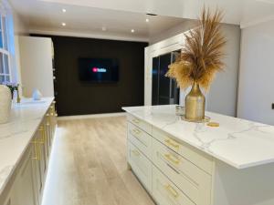 A recently renovated villa situated in Newtongrange, Red Roofs - 5BR Luxury - Large Gardens - EV Point - Near Edinburgh features a garden. The property has garden and quiet street views, and is 3.1 km from Dalhousie Castle. Red Roofs - 5BR Luxury - Large Gardens - EV Point - Near Edinburgh offers barbecue facilities, free WiFi, private parking, and an EV charging station.