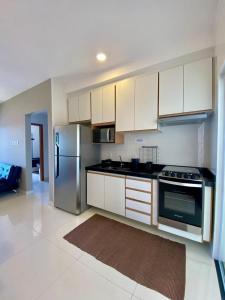 El apartamento dispone de 2 dormitorios, TV de pantalla plana con canales por cable, una cocina equipada con nevera y horno, lavadora y 2 baños con ducha. El alojamiento Rede Lar e Mar - Condomínio La Vie - Ubatuba puede facilitar toallas y ropa de cama por un cargo adicional.