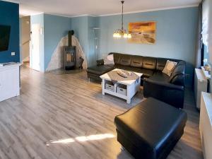Questa casa di campagna dispone di lettore DVD, cucina con frigorifero, lavastoviglie e forno, soggiorno con area salotto e zona pranzo, 2 camere da letto e 2 bagni con doccia e vasca da bagno. Reethaus Zickersche Berge - WG 02 mit Kamin und Terrasse fornisce agli ospiti biancheria da letto e asciugamani.