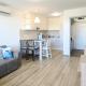 L'alloggio climatizzato di Regatta Apartman Keszthely offre soggiorno, 1 camera da letto, cucina con frigo e macchina da caffè, e bagno con vasca o doccia e phon. Regatta Apartman Keszthely fornisce lenzuola e asciugamani ai propri ospiti.