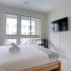 Questo appartamento con 1 camera da letto dispone di un soggiorno con TV a schermo piatto, una cucina con utensili, frigorifero e lavastoviglie, e 1 bagno con asciugacapelli.