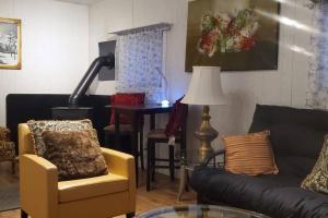 This holiday home offers a fireplace. This holiday home comprises 1 living room, 2 separate bedrooms and 1 bathroom with a bath or a shower and a hairdryer. Guests will find a stovetop, a refrigerator, an oven and a microwave in the kitchen. The holiday home also provides guests with a barbecue. The holiday home provides a flat-screen TV with streaming services, a washing machine, a tea and coffee maker, tumble dryer as well as garden views. V této ubytovací jednotce je k dispozici 3 postele.