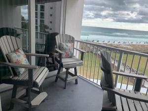 The spacious holiday home has 2 bedrooms, 2 bathrooms, bed linen, towels, a flat-screen TV with cable channels, a dining area, a fully equipped kitchen, and a balcony with sea views. For added privacy, 1044 Remodeled Condo - Shoreline Towers 1044 | Free Beach Setup! features a private entrance.