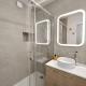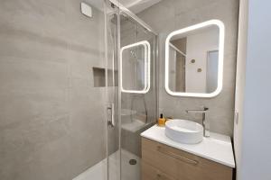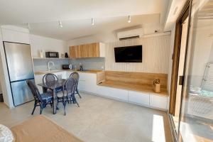 Klimatizovaný apartmán Renovated 2 room apartment - AC and terrace má 1 ložnici, plně vybavenou kuchyň s lednicí a myčkou a 1 koupelnu. Koupelna je vybavená sprchou.
