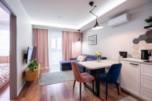 Guests can make meals in the kitchen that features a stovetop, a refrigerator, kitchenware and an oven. The air-conditioned apartment features a flat-screen TV with streaming services, a washing machine, a tea and coffee maker, a seating area as well as city views. V této ubytovací jednotce se nachází 2 postele.