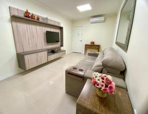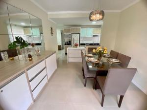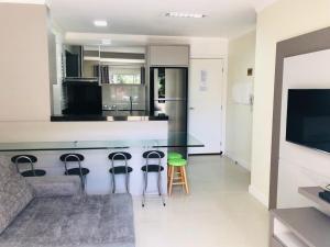 Res. Praia DI Capri in Bombinhas offers a spacious apartment with free WiFi, air-conditioning, and a private bathroom. The fully equipped kitchen includes a refrigerator, microwave, oven, stovetop, toaster, and coffee machine.