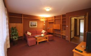 Apartmány mají dřevěný nábytek, 1 nebo 2 ložnice, obývací pokoj s plně vybaveným kuchyňským koutem a koupelnu.