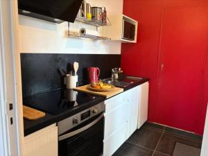 Die Küche im Résidence C03-perros Guirec - Maison de charme Côte de Granit Rose Perros Guirec MAE-0951 ist mit Kühlschrank, Geschirrspüler, Backofen und Kaffeemaschine ausgestattet.