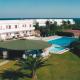 Najdete zde bar a altán, kde se každé ráno podává snídaně. K dispozici jsou bazény pro dospělé i děti, tenisový kurt, volejbalové hřiště a bowlingová dráha. V zahradě najdete stolní tenis, dětské hřiště a lehátka u bazénů.